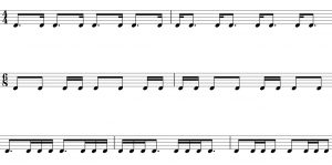 - 16分音符が続くところは、以前やったスイングの練習(2/5のレッスン参照)で指の動きを覚えさせる。
